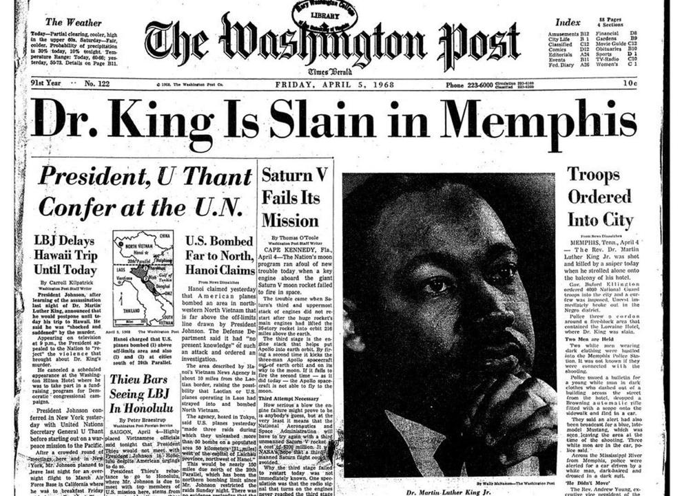 April 4th, 1968: MLK Jr. assassinated in Memphis.